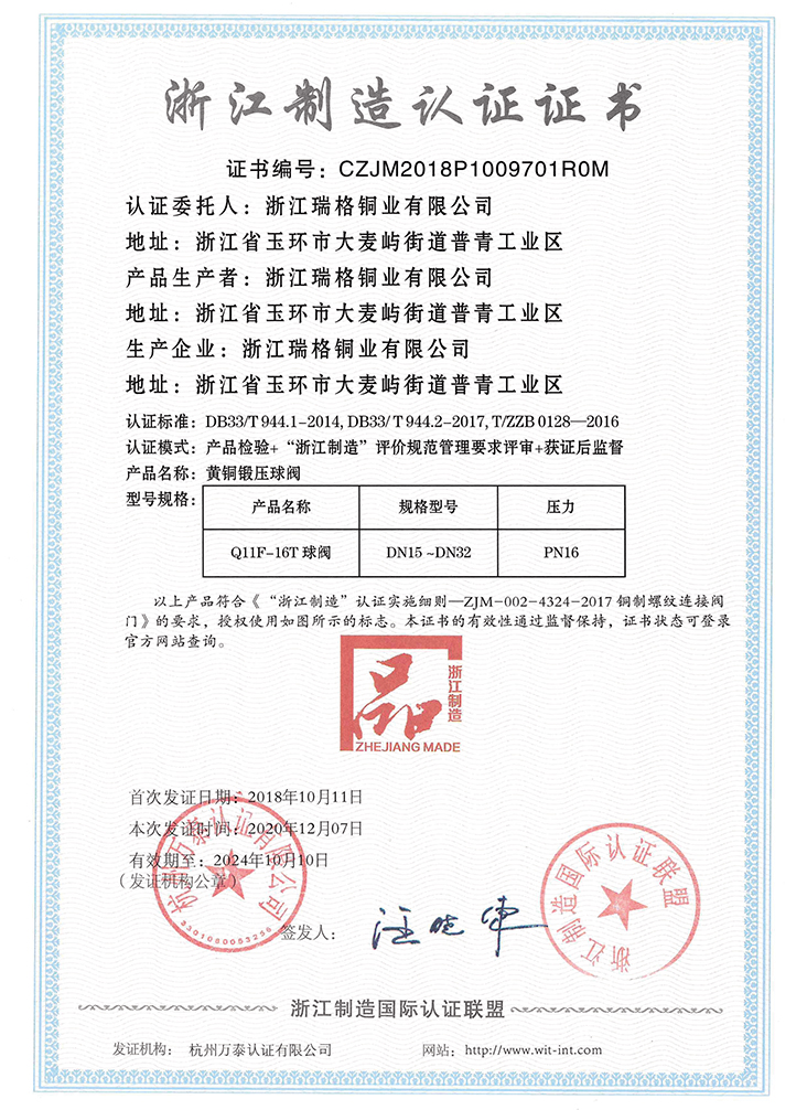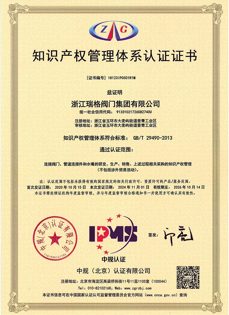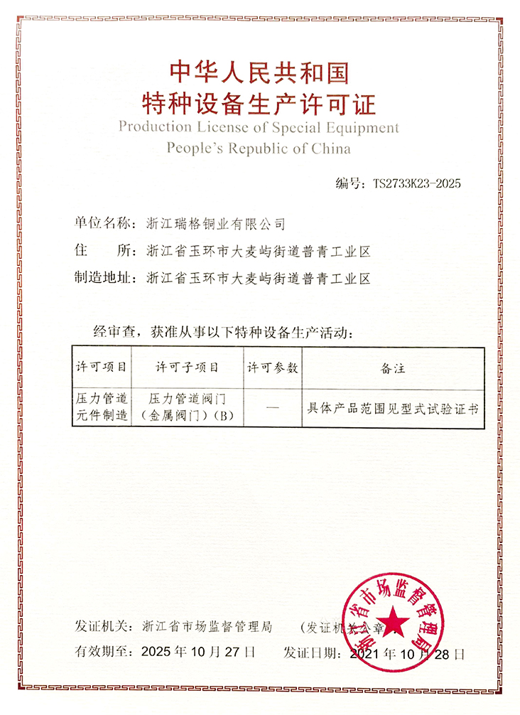 公司先后通過IS09001, IS014001, TS壓力管道許可證、標(biāo)準(zhǔn)化良好行為認(rèn)證、中國節(jié)水產(chǎn)品認(rèn)證、中國城市燃?xì)鈪f(xié)會會員單位等各類體系認(rèn)證,榮獲“浙江省著名商標(biāo)”、“浙江名牌產(chǎn)品”、中國建筑五金行業(yè)“知名品牌”、中國質(zhì)量萬里行質(zhì)量信用企業(yè),“全國水暖、閥門名優(yōu)品牌定點生產(chǎn)(采購)企業(yè)”、”AAA”級信用企業(yè)、浙江省工商局”A級信用企業(yè)”、玉環(huán)縣百強(qiáng)企業(yè)和玉龍企業(yè)等諸多榮譽。2010年公司受邀參加由全國閥門標(biāo)準(zhǔn)化委員會組織、合肥通用機(jī)械研究院主持,經(jīng)中華人民共和國工業(yè)和信息化部核準(zhǔn)的閥門標(biāo)準(zhǔn)的起草和制定。公司產(chǎn)品由中國人保財險提供產(chǎn)品責(zé)任保險。