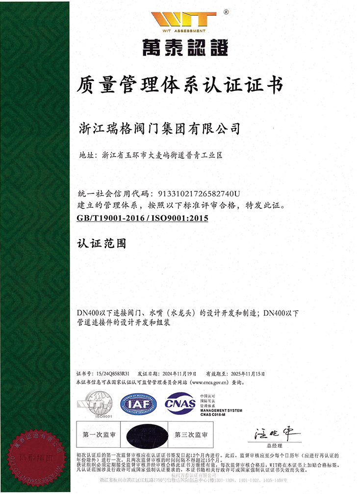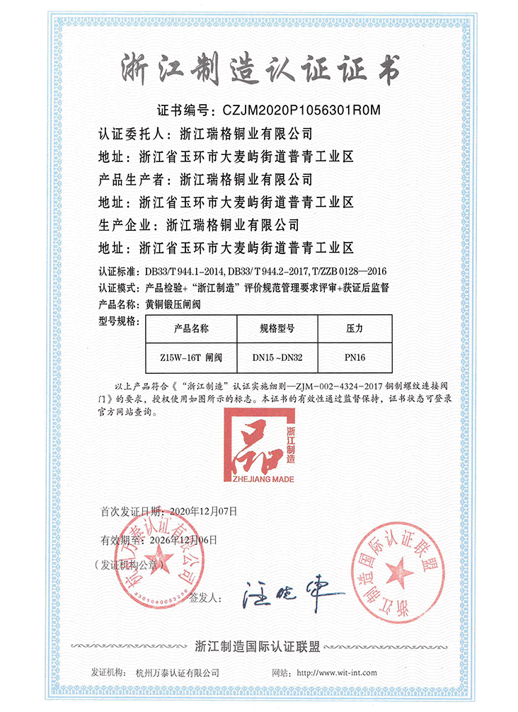 浙江瑞格閥門集團(tuán)有限公司成立于1993年,地處中國東海之濱,中國閥門之都,水暖閥門采購基地一浙江玉環(huán)。公司占地面積3萬多平方米,建筑面積5萬多平方米,現(xiàn)有員工500余人,各類專業(yè)技術(shù)人員100余人。本公司集研發(fā)、生產(chǎn)、銷售和服務(wù)為一體,產(chǎn)品涵蓋了閥門、水暖、衛(wèi)浴、管件、廣泛應(yīng)用于給排水系統(tǒng)、城市供熱系統(tǒng)、暖通管道系統(tǒng)、空調(diào)管道系統(tǒng)、燃?xì)庀到y(tǒng)及產(chǎn)品配套等領(lǐng)域的股份制企業(yè);為國內(nèi)外用戶提供極致的一站式服務(wù),產(chǎn)品銷售網(wǎng)絡(luò)遍布國外和國內(nèi)32個省市自治區(qū),深受用戶的青睞和好評,在國內(nèi)中、低壓民用銅閥門領(lǐng)域中屬四大閥門品牌之一。